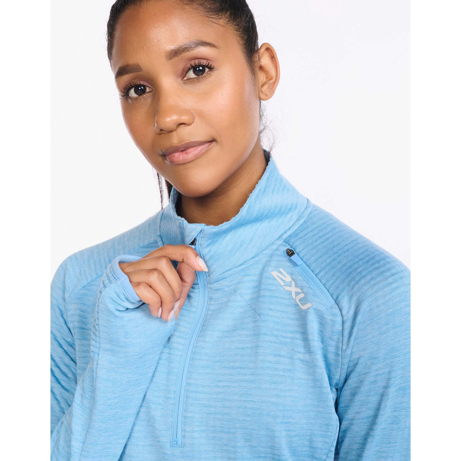 The 2XU Ignition ¼ Zip in the Mirage/Silver Reflective colourway is a cold weather must have for any runner. Double waffle knit creates small air pockets that trap body heat and keep you warm whilst thumbhole cuffs with flip over mittens protect your hands from wind chill.
